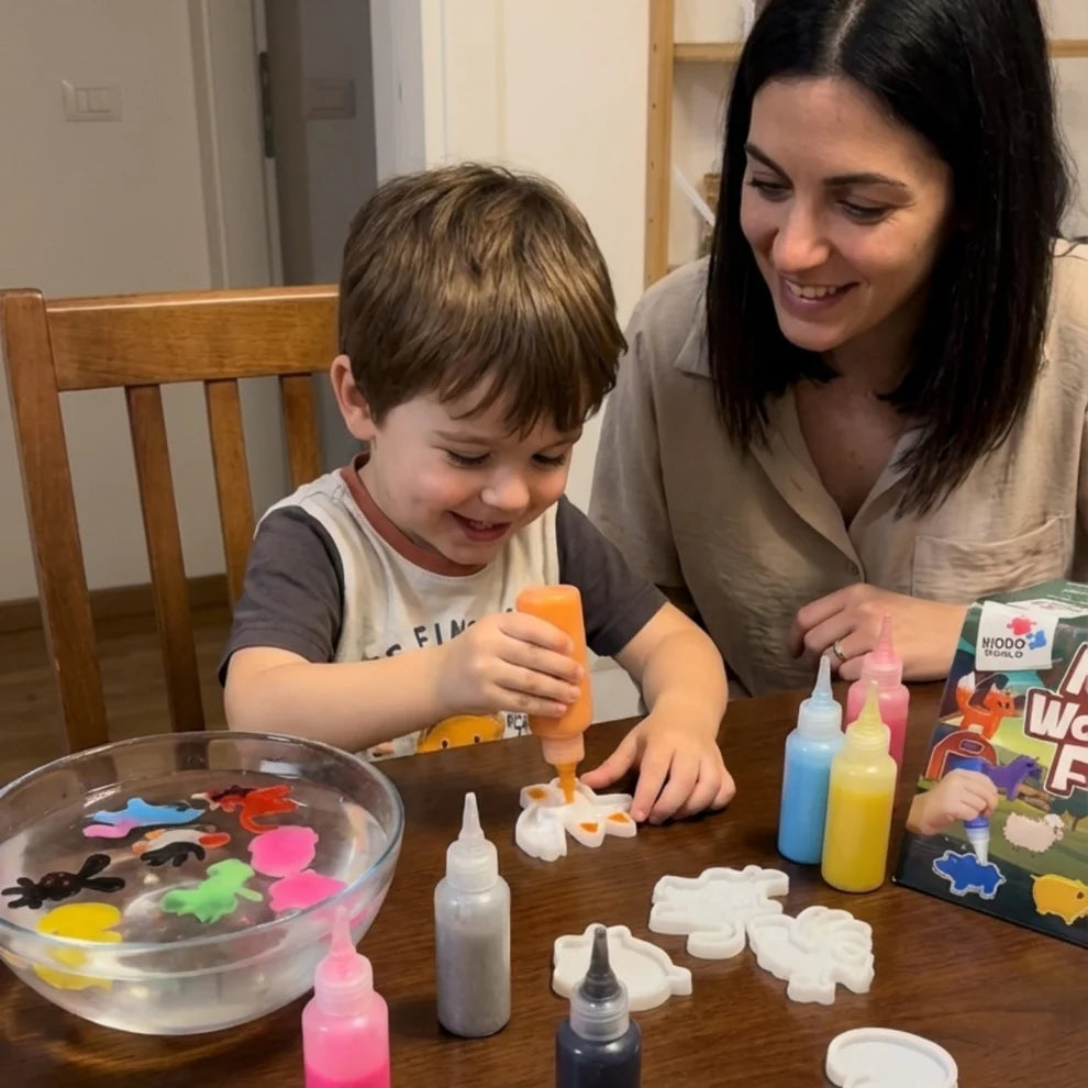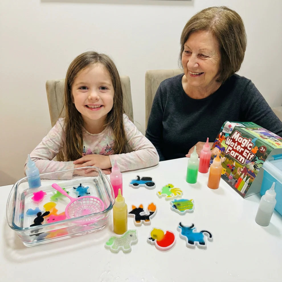 ✔ Set creativ cu spiriduși de apă, geluri sclipitoare și modele de animale de la fermă – copiii observă schimbări magice de culori și texturi