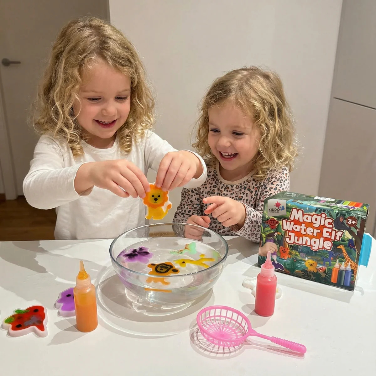 ✔ Set creativ cu zâne de apă, geluri strălucitoare și forme de animale din junglă – copiii observă schimbările magice de culori și texturi
